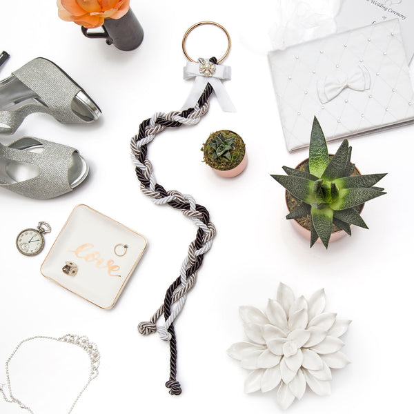 - ADD BEAUTY TO YOUR WEDDING DISPLAY with this combination of gorgeous silver, White and Grey strands, all attached to a Gold ring. Braided together, THE STRAND or wedding knot signifies a lasting covenant with God in marriage.
